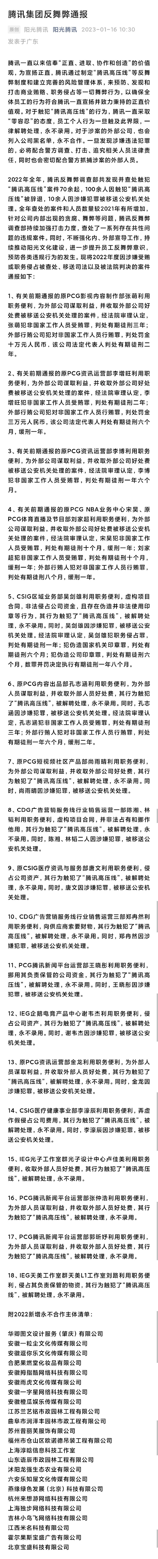 2022年12月,腾讯召开内部员工大会,腾讯董事会主席兼CEO马化腾当时表示,腾讯集团内部的贪腐问题“真的是触目惊心”,很多业务做不起来,并不是因为管理者问题,也不是业务方向问题,而是贪腐漏洞太大,业务被掏空。