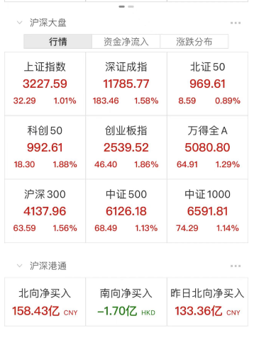 北向资金净买入超158亿元,续创2022年11月14日以来新高。