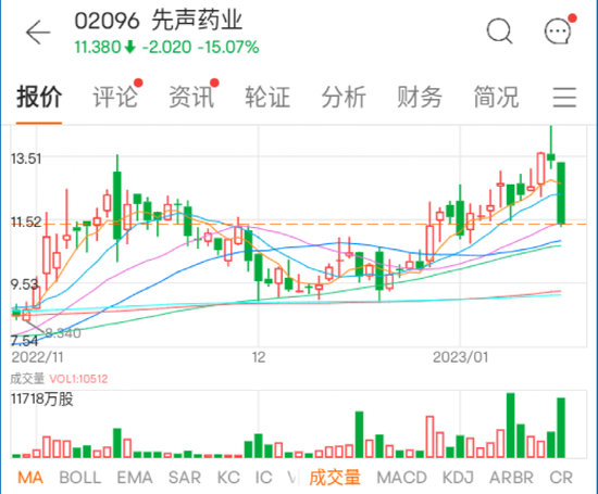 先声药业1月16日公告新冠小分子药获监管部门受理,昨日盘中创出新高后转跌,17日股价转而大跌15%。