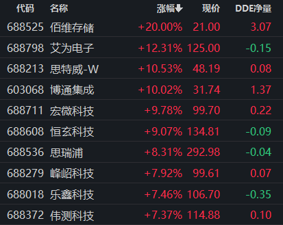板块方面,半导体及元件板块持续走强,收涨2.47%。个股中,佰维存储、博通集成涨停,艾为电子、思特威-W等涨逾10%;宏微科技、恒玄科技、思瑞浦等多股涨逾7%。