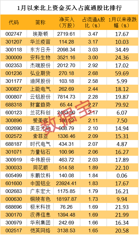 北上资金1月净买入额是去年全年的近1.5倍。