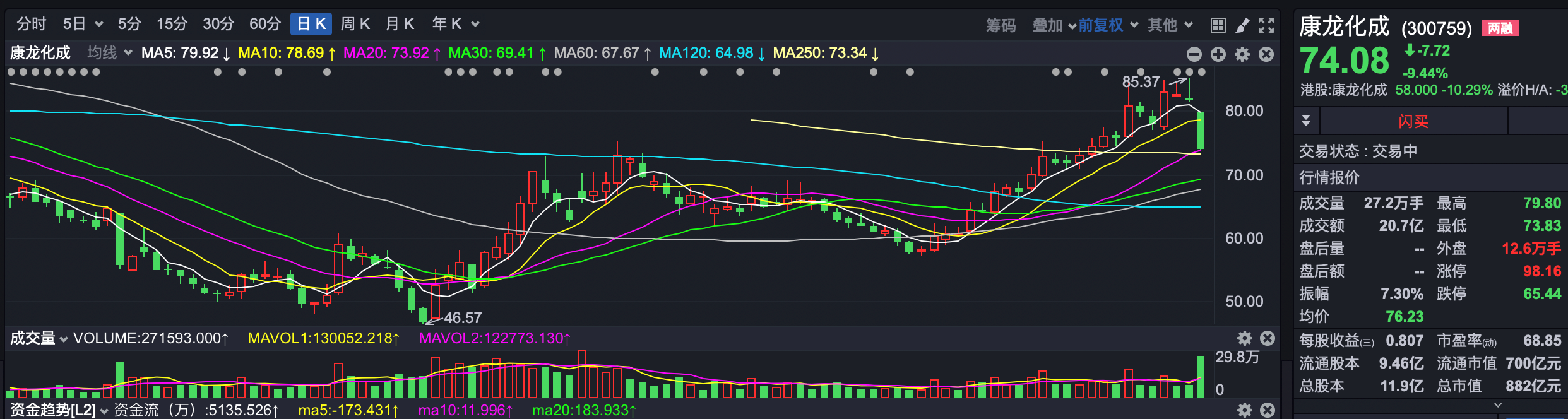医药龙头康龙化成,预计去年净利润13.12亿~14.45亿,同比减少21%~13%。