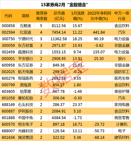 15家券商2月“金股组合”出炉