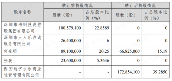 在今年8月,浩明投资、人人乐咨询公司、原实控人何金明等计划把持有的39.3%股权转让给曲江文化的一致行动人永乐商管,转让价格为5.88元/股,在2023年2月13日,永乐商管将完成要约收购,曲江文化将彻底掌控人人乐。