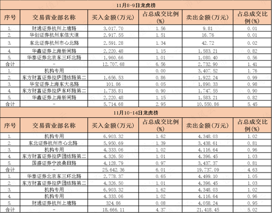 最初3天(11月3-7日)的龙虎榜显示,活跃游资与“散户大本营”已经深度参与到西安饮食的炒作中。买方前三席是2家华泰证券的营业部和华宝证券上海东大名路,买入金额均为2000多万,且在历史上相当活跃。