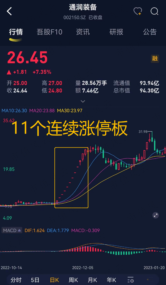而今年股价涨幅最妖的是通润装备,全年上涨2.3倍,大涨时间是11月中旬以后,期间爆发了11个连续涨停板,大部分为一字涨停板,散户基本没有上车机会。