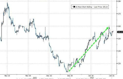 如果你还想寻找更多的证据,那么不妨再来看看那些曾经空头云集的标的的惊人变化。高盛编制的一篮子“最被做空”的股票指数在1月份飙升了19%——这是自2021年1月以来最大的月度轧空。
