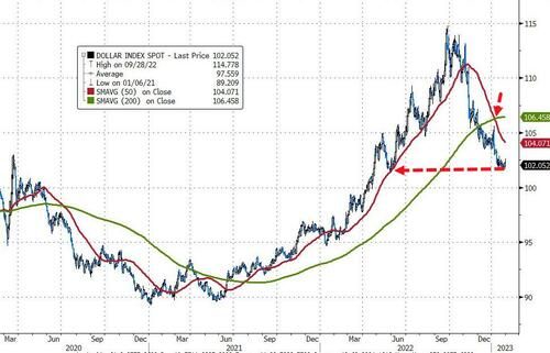 外汇市场在1月的波动也同样不小。随着市场不断押注美联储转向,彭博美元指数目前已连续第4个月下跌,同时在技术面日线级别已录得了“死亡交叉”信号。
