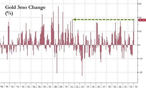 在过去三个月,黄金价格已累计攀升了18%,为2011年8月以来的最强劲涨幅。