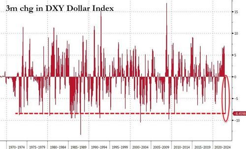 这也是这一全球主要储备货币历史上最大的三个月跌幅之一: