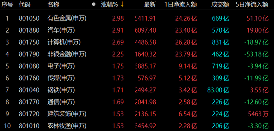 2月1日,A股三大指数收红,成交额再上1万亿元,北上资金继续净买入近70亿元,申万一级行业普涨,有色金属与汽车等表现强势。业内人士表示,待到近期各方筹码交换完成,大的行情启动就会基本确立。