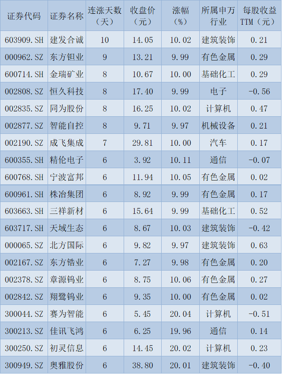 涨停股方面,今日有80只个股以涨停价报收,其中,有20只个股股价已连续上涨超过6个交易日;跌停方面,有13只个股跌停价报收。从申万一级行业看,计算机和机械设备行业涨停股数量居首,均为10只,有色金属和建筑装饰紧随其后,涨停股数均为8只。
