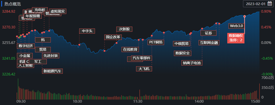 从概念板块来看,东方财富363个概念板块中,360个上涨,占比99.17%。ChatGPT概念领涨,涨幅达7.01%,此外,RCS概念、AIGC概念、F5G概念、人脑工程、机器视觉、华为欧拉、钛白粉、Web3.0和数据确权等9个板块涨幅均超4%。下跌方面,草甘膦和租售同权下跌,跌幅分别为0.15%和0.12%。