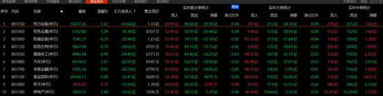 主力资金净流出的行业有27个,电力设备行业主力资金净流出规模居首,全天净流出资金63.68亿元。除此之外,有色金属、机械设备、医药生物、基础化工、汽车等板块主力净流出规模也相对靠前。
