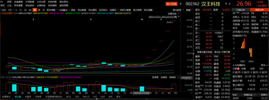 值得一提的是,汉王科技今日实现5连板。截至2月3日收盘,汉王科技报价26.96元/股,最新市值65.9亿元。