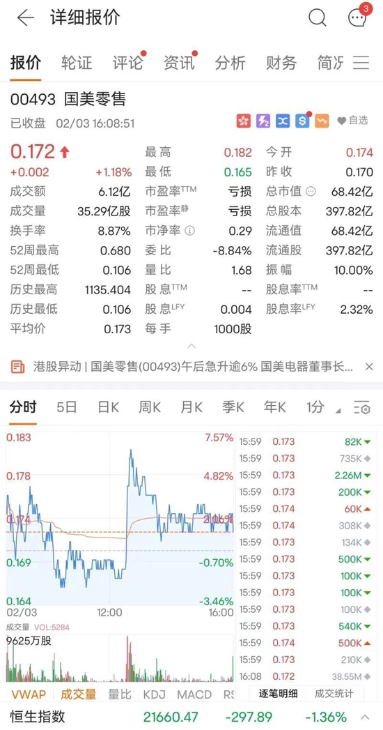 国美零售走深V行情