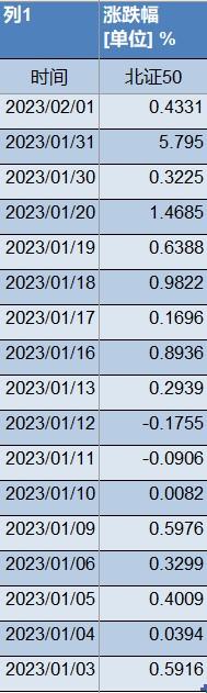 值得投资者关注的是,伴随着北交所做市交易正式上线的临近,北证50指数也是表现可观。Wind数据显示,2023年首月,北证50指数仅有2个交易日未能实现上涨,其余15个交易日均收红。
