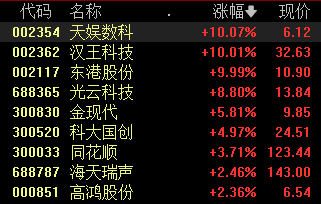 截至发稿,汉王科技7连板,天娱数科(维权)3连板,云从科技跌近7%。