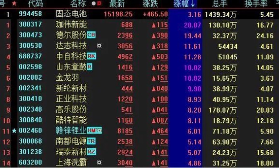 从热门板块来看,2月8日,固态电池板块逆市走高,涨幅达3.16%,位居大智慧热门板块涨幅榜首位。其中,珈伟新能20CM涨停,金龙羽、山东章鼓、新纶新材(维权)等概念股纷纷涨停。
