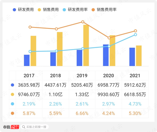 实际上,哪怕是在营收规模大幅下降的前提下,公司哪怕是研发费用最高的2020年,也没有超过7000万,研发费用率更是多年保持在3%以下。