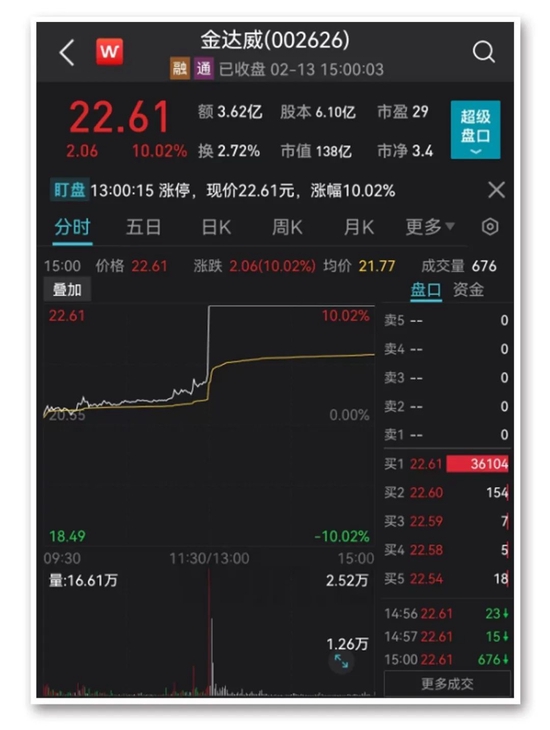 2月13日午后,维生素概念异动拉升,金达威“秒板”。诚志股份也一度涨停,兄弟科技、花园生物、新和成等大幅冲高。