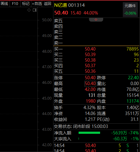 亿道信息是一家以ODM为模式,专业从事笔记本电脑、平板电脑及其他智能硬件等电子设备的研发、设计、生产和销售的高新技术企业。公司股票于情人节2月14日在深市主板上市,同时该股代码为“001314”,两大巧合于一身,亿道信息也被股民称作“情人节第一股”。毫不意外,该股今天44cm涨停。不过,从换手率来看,该股全天换手超4%,凸显筹码较为松动,市场情绪较谨慎。