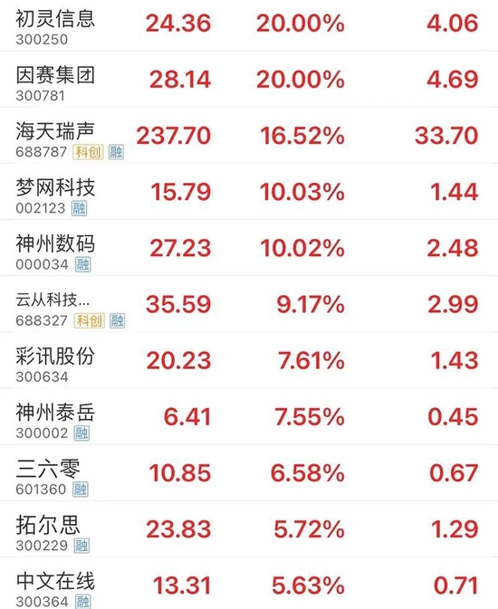 此外,云计算龙头浪潮信息今日再度触及涨停,走出5天3板,成交额超54亿元。