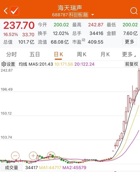 人气热门股海天瑞声早盘大涨逾10%,截至午间收盘,海天瑞声大涨超16%,兔年以来的13个交易日内,该公司股价已累计上涨近250%。