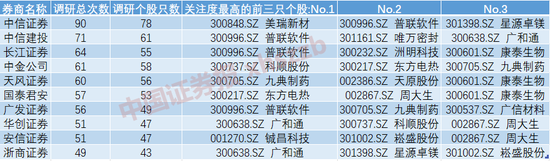 从券商调研次数排名看,截至2月15日,2月以来中信证券以90次的调研总次数拔得头筹,中信建投、长江证券分别以71次、64次,居第二、第三位。中金公司、天风证券、国泰君安、广发证券、安信证券、华创证券调研次数均超过50次。