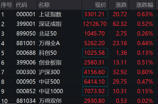 在大金融板块的带动下,上午A股各主要指数全线走高,上证指数重回3300点。