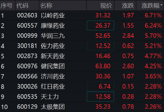 除医药电商概念外,中药股上午表现亦向好,以岭药业、康缘药业、华润三九、佐力药业等个股盘中均有不俗涨幅。
