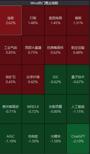 盘面上,信创、半导体、面板板块持续活跃;ChatGPT、AIGC、光模块等概念回撤,充电桩概念下挫。