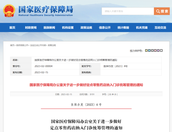 2月15日晚,国家医保局发布《国家医疗保障局办公室关于进一步做好定点零售药店纳入门诊统筹管理的通知》。通知要求,要高度重视定点零售药店纳入门诊统筹工作,积极支持定点零售药店开通门诊统筹服务。