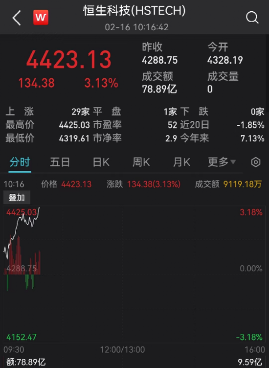 开盘后,港股市场涨幅持续扩大,恒生科技涨超3%。