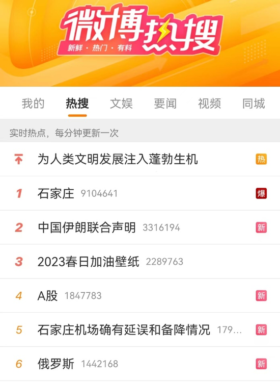 16日午后,石家庄登上微博热搜第一。据多家媒体报道,有网友发现,各地飞往石家庄的多个航班正在备降或已备降至其他地方机场。下午14时许,石家庄正定国际机场接线员透露,中午11点至13点左右,石家庄正定国际机场空域被占用,该时段到达的航班均未落地,备降其他机场,目前已恢复正常。此后,民航华北地区管理局值班工作人员向媒体透露,接到反馈信息是“发现了一个不明飞行物,最后侦查出来是一个气球,现在已经恢复正常” 。