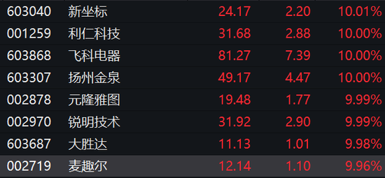 此外,消费股也早盘活跃,食品、家电板块领涨,飞科电器、利仁科技、麦趣尔涨停。