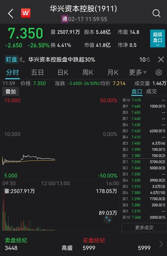 17日早盘,港股市场上跌得最惨的莫过于华兴资本控股。开盘快速下跌超30%,盘中最低一度重挫近50%,截至午间收盘,仍然下跌26.5%。