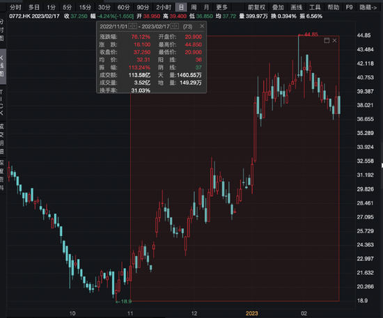 不过,部分ChatGPT 概念公司自2022年11月1日以来,已经录得可观涨幅。例如,阅文集团2022年11月1日截至目前,估计上涨了76.12%。