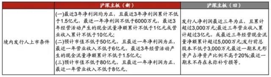 其次,针对不同上市板块设定“差异性”的多元上市条件。具体来看,在上市方面,核准制下的主板上市需要满足营收、净利润、现金流量等财务指标,对于上市公司要求较为严苛,主板注册制则取消了最近一期末不存在未弥补亏损、无形资产占净资产的比例限制等要求,综合考虑预计市值、净利润、收入、现金流等因素,设置了“持续盈利”“预计市值+收入+现金流”“预计市值+收入”等多套多元包容的上市指标,进一步提升市场包容性。