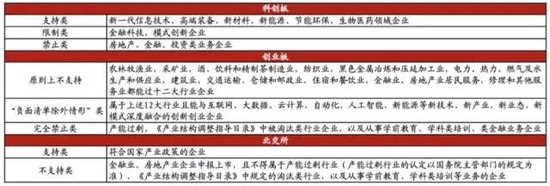 最值得注意的是,全面注册制的“中国特色”还体现在对于上市公司所属行业具有明确导向。此前实施注册制的科创板,其推出的时代背景与国家战略决策选择,决定了其“面向世界科技前沿、面向经济主战场、面向国家重大需求”的使命与任务,其主要支持包括新一代信息技术、高端装备等6大领域高新技术产业和战略新兴产业,而对于金融科技、模式创新企业采取限制措施,对于房地产、金融、投资业务等企业采取禁止措施。创业板则更为关注“创新、创造、创意”和“新技术、新产业、新业态、新模式”,禁止产能过剩、学前教育、学科类培训、类金融业务企业上市;北交所也同样支持符合国家产业政策的企业,而对金融业、房地产等行业所属企业持不支持的态度。
