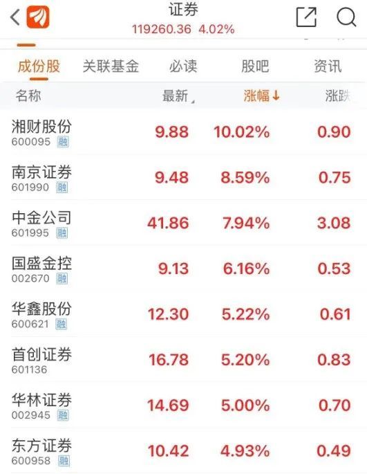 受全面注册制落地消息影响,券商股午后持续拉升,湘财股份涨停,南京证券涨超8%,中金公司、国盛金控(维权)跟涨。
