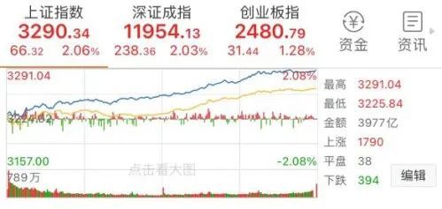 今日,大盘全天震荡走高,沪指涨2.06%,创业板指涨1.28%,两市上涨个股家数近4000家。