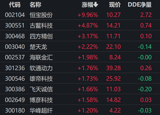 成份股中,恒宝股份(维权)一字涨停,有39.51万手封单;古鳌科技涨近5%;另有四方精创、楚天龙、飞天诚信等股拉升上涨,盘中交投活跃。