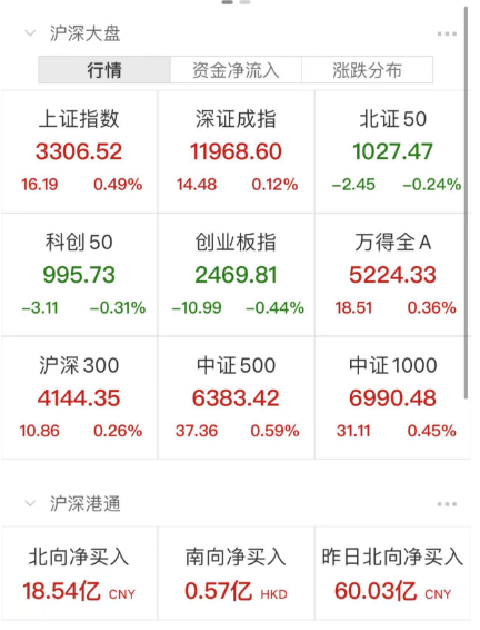 两市共2939只个股上涨,1927只个股下跌。北向资金净买入逾18亿元。