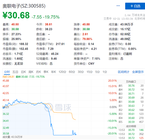 今天A股比较受人关注的是一家叫奥联电子的公司,被央企发文公开打脸,股价直接20cm跌停。