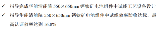 胥某未曾受邀到访华能清能院,也未曾参与华能清能院钙钛矿中试线的任何设备调试和工艺研究,本公司与其个人亦无任何业务往来。不存在“指导华能清能院 550×650mm 钙钛矿电池组件中试线效率验收达标,最高认证效率达到16.8%”等相关事实,且文中“16.8%”的认证效率数据为杜撰数据,与本公司认证数据不符。