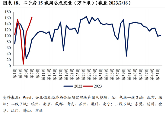 近期地产基本面逐渐企稳回升,叠加拥挤度和估值处于低位,当前板块的投资性价比较高。第一,截至2月16日,15城成交面积同比变化+85.6%,环比+21.0%,1月以来累计同比+186.2%,年初以来,二手房成交面积累计同比变化+25.2%。第二,政策继续发力,因城施策持续变化。第三,房地产行业拥挤度处于历史较低水平。与此同时,房地产的拥挤度处于历史低位。