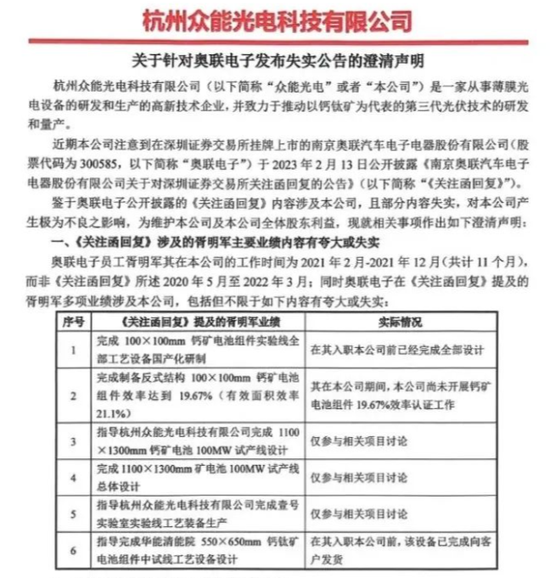 今日,杭州众能光电发布针对奥联电子的澄清声明,称奥联电子公开被露的《关注函回复》内容涉及公司,且部分内容失实,对公司产生极为不良之影响,公司保留追究相关方法律责任的权利。