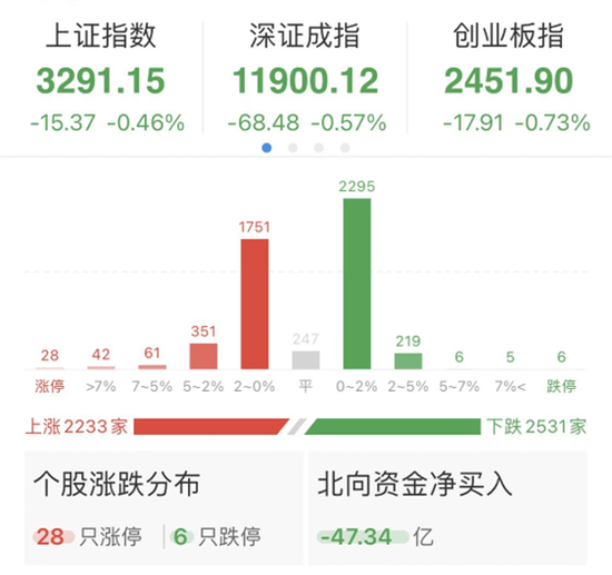 周三(2月22日),A股三大股指低开震荡,上证指数盘中一度重回3300点。截至收盘,上证指数跌幅达0.46%,报3291.15点;深证成指和创业板指跌幅分别为0.57%和0.73%,总体来看,两市个股跌多涨少。对于后市,受访业内人士普遍认为,未来市场仍以震荡上行为主。
