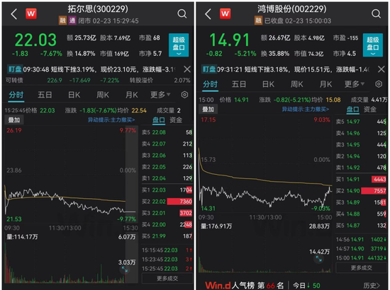 今年涨幅接近翻倍的拓尔思,今日跌超7%;此前收获5连板、今年累计区间最大涨幅超过150%的鸿博股份,今日在创出历史新高后大跌5.2%。